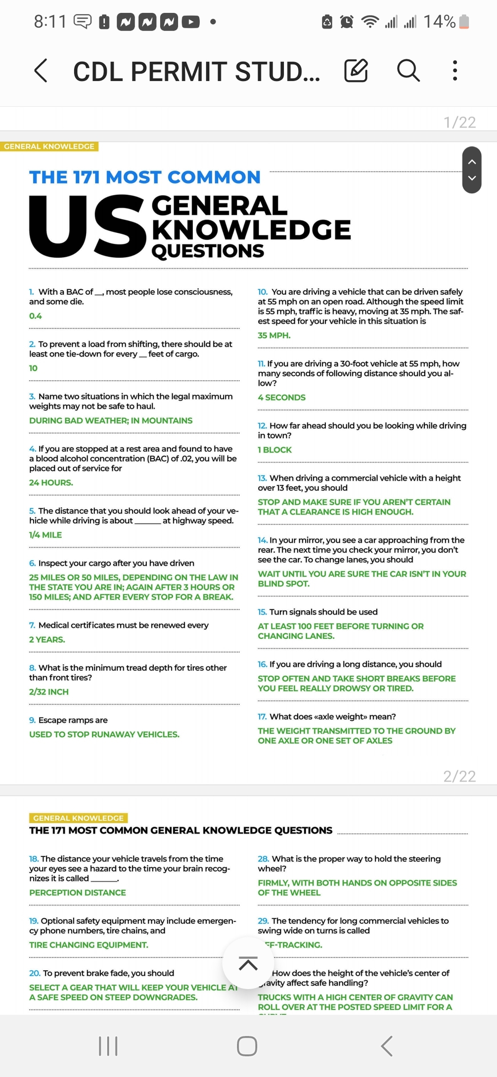 CDL Manual, quizzes, and answer sheets